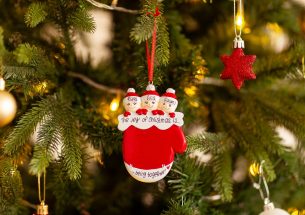 Qualcuno si diverte facendo capolino dal caldo e glitterato guanto natalizio. La decorazione da appendere all’albero è pronta per essere personalizzata inserendo i nomi sui cappellini dei 3 personaggi e scrivendo una frase, un augurio o una data sul banner bianco. Le nostre bravissime decoratrici provvederanno a scrivere a mano ogni tuo desiderio, senza nessun costo aggiuntivo. Ogni decorazione sarà consegnata nella splendida Gift Box.