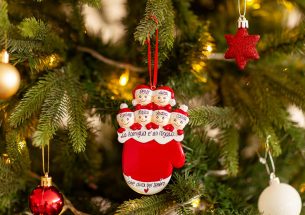 Qualcuno si diverte facendo capolino dal caldo e glitterato guanto natalizio. La decorazione da appendere all’albero è pronta per essere personalizzata inserendo i nomi sui cappellini dei 6 personaggi e scrivendo una frase, un augurio o una data sul banner bianco. Le nostre bravissime decoratrici provvederanno a scrivere a mano ogni tuo desiderio, senza nessun costo aggiuntivo. Ogni decorazione sarà consegnata nella splendida Gift Box.