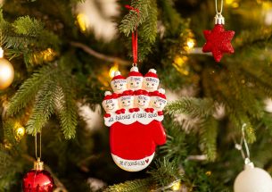 Qualcuno si diverte facendo capolino dal caldo e glitterato guanto natalizio. La decorazione da appendere all’albero è pronta per essere personalizzata inserendo i nomi sui cappellini dei 7 personaggi e scrivendo una frase, un augurio o una data sul banner bianco. Le nostre bravissime decoratrici provvederanno a scrivere a mano ogni tuo desiderio, senza nessun costo aggiuntivo. Ogni decorazione sarà consegnata nella splendida Gift Box.