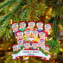Tutti uniti intorno a un cuore bianco con il bordo rosso per augurare buon Natale! La decorazione, pronta per essere appesa all’albero di Natale, arriverà nella splendida Gift Box. La vera particolarità sta nella personalizzazione, infatti, puoi inserire i nomi sui cappellini dei 15 personaggi e scrivere una breve frase, un augurio o una data nel banner bianco. Le nostre bravissime decoratrici scriveranno a mano ogni tuo desiderio, senza nessun costo aggiuntivo.