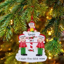 In viaggio verso il Polo Nord! Siamo pronti a partire per il Circolo Polare Artico alla ricerca di Babbo Natale. La decorazione da appendere all’albero è pronta per essere personalizzata inserendo i nomi sui cappellini dei 3 personaggi e scrivendo una frase, un augurio o una data sui due banner bianchi. Le nostre bravissime decoratrici provvederanno a scrivere a mano ogni tuo desiderio, senza nessun costo aggiuntivo. Ogni decorazione sarà consegnata nella splendida Gift Box.