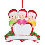 Una dolce famiglia abbraccia un grande cuore bianco con il bordo rosso per augurare a tutti buon Natale! La decorazione, pronta per essere appesa all’albero di Natale, arriverà nella splendida Gift Box. La vera particolarità sta nella personalizzazione, infatti, puoi inserire i nomi sui cappellini dei 3 personaggi e scrivere una breve frase, un augurio o una data sul cuore e nel banner bianco. Le nostre bravissime decoratrici scriveranno a mano ogni tuo desiderio, senza nessun costo aggiuntivo.
