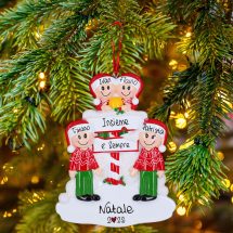 In viaggio verso il Polo Nord! Siamo pronti a partire per il Circolo Polare Artico alla ricerca di Babbo Natale. La decorazione da appendere all’albero è pronta per essere personalizzata inserendo i nomi sui cappellini dei 4 personaggi e scrivendo una frase, un augurio o una data sui due banner bianchi. Le nostre bravissime decoratrici provvederanno a scrivere a mano ogni tuo desiderio, senza nessun costo aggiuntivo. Ogni decorazione sarà consegnata nella splendida Gift Box.