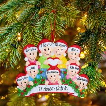 Tutti uniti intorno a un cuore bianco con il bordo rosso per augurare buon Natale! La decorazione, pronta per essere appesa all’albero di Natale, arriverà nella splendida Gift Box. La vera particolarità sta nella personalizzazione, infatti, puoi inserire i nomi sui cappellini dei 9 personaggi e scrivere una breve frase, un augurio o una data nel banner bianco. Le nostre bravissime decoratrici scriveranno a mano ogni tuo desiderio, senza nessun costo aggiuntivo.