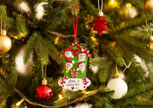 Quattro splendide faccette si affacciano alla finestra della loro casa di Natale con un bellissimo sorriso pieno di allegria. La decorazione da appendere all’albero è pronta per essere personalizzata inserendo i nomi sul cappellino di ogni personaggio e scrivendo una frase, un augurio o una data sul banner bianco. Le nostre bravissime decoratrici provvederanno a scrivere a mano ogni tuo desiderio, senza nessun costo aggiuntivo. Ogni decorazione sarà consegnata nella splendida Gift Box.