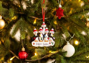 La famiglia di 5 pinguini che ti aiuterà a mettere le lucine di Natale è una decorazione originale e simpatica da appendere all’albero. Ogni oggetto potrà essere personalizzato, secondo i tuoi desideri, dalle nostre decoratrici. Si possono inserire i nomi dei membri della famiglia su ogni animaletto e scrivere un augurio, una data o una breve frase sul banner bianco. Tutte le scritte personalizzate sono fatte a mano, senza costi aggiuntivi. Ogni decorazione ti arriverà nella splendida Gift Box.