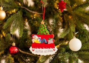 Un momento indimenticabile per le vacanze natalizie? Stare seduti sul divano leggendo storie di Natale. La decorazione è pronta per essere personalizzata inserendo il nome sul cappellino del personaggio e scrivendo una breve frase, un augurio o una data sul banner bianco. Le nostre bravissime decoratrici scriveranno a mano ogni tuo desiderio, senza nessun costo aggiuntivo. Ogni decorazione sarà consegnata nella splendida Gift Box.