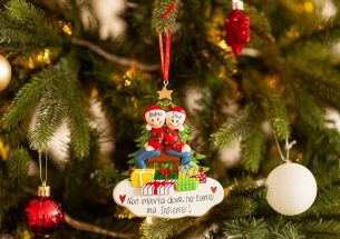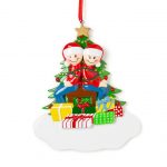 Un’atmosfera natalizia piena di allegria con lucine colorate e pacchi regalo sotto l’albero. La decorazione è pronta per essere personalizzata inserendo i nomi sui cappellini dei 2 personaggi e scrivendo una breve frase, un augurio o una data sul banner bianco. Le nostre bravissime decoratrici scriveranno a mano ogni tuo desiderio, senza nessun costo aggiuntivo. Ogni decorazione sarà consegnata nella splendida Gift Box.