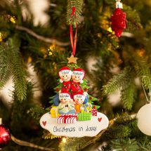 Un’atmosfera natalizia piena di allegria con lucine colorate e pacchi regalo sotto l’albero. La decorazione è pronta per essere personalizzata inserendo i nomi sui cappellini dei 4 personaggi e scrivendo una breve frase, un augurio o una data sul banner bianco. Le nostre bravissime decoratrici scriveranno a mano ogni tuo desiderio, senza nessun costo aggiuntivo. Ogni decorazione sarà consegnata nella splendida Gift Box.