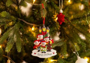 La musica di Natale suonerà in tutte le case e le sue melodie faranno vivere momenti di spensieratezza e felicità. La decorazione è pronta per essere personalizzata inserendo i nomi sui cappellini dei 4 personaggi e scrivendo una breve frase, un augurio o una data sul banner bianco. Le nostre bravissime decoratrici scriveranno a mano ogni tuo desiderio, senza nessun costo aggiuntivo. Ogni decorazione sarà consegnata nella splendida Gift Box.