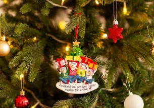 Ricevere i regali di Natale rende tutti molto felici, soprattutto quando sono unici! La decorazione è pronta per essere personalizzata inserendo i nomi sui cappellini dei 4 personaggi e scrivendo una breve frase, un augurio o una data sul banner bianco. Le nostre bravissime decoratrici scriveranno a mano ogni tuo desiderio, senza nessun costo aggiuntivo. Ogni decorazione sarà consegnata nella splendida Gift Box.