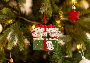 Un pacco regalo con una sorpresa inaspettata per tutti. La decorazione da appendere all’albero è pronta per essere personalizzata inserendo i nomi sui cappellini dei 5 personaggi e scrivendo una frase, un augurio o una data sul banner bianco. Le nostre bravissime decoratrici provvederanno a scrivere a mano ogni tuo desiderio, senza nessun costo aggiuntivo. Ogni decorazione sarà consegnata nella splendida Gift Box.
