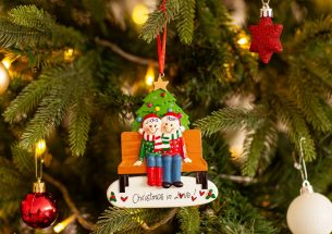Una panchina di Natale per sedersi insieme e guardare il tramonto, respirando l’atmosfera natalizia. La decorazione è pronta per essere personalizzata inserendo i nomi sui cappellini dei 2 personaggi e scrivendo una breve frase, un augurio o una data sul banner bianco. Le nostre bravissime decoratrici scriveranno a mano ogni tuo desiderio, senza nessun costo aggiuntivo. Ogni decorazione sarà consegnata nella splendida Gift Box.