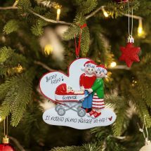 L'atmosfera natalizia si scalda con l'arrivo di un nuovo membro della famiglia pronto per essere portato a passeggio tra le lucine e la neve. La decorazione è pronta per essere personalizzata inserendo i nomi sui cappellini dei personaggi e scrivendo una breve frase, un augurio o una data sul banner bianco. Le nostre bravissime decoratrici scriveranno a mano ogni tuo desiderio, senza nessun costo aggiuntivo. Ogni decorazione sarà consegnata nella splendida Gift Box.