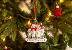 La sera della vigilia è perfetta da trascorrere in famiglia con i pigiamini indossati, seduti sul divano, ad aspettare l’arrivo di Babbo Natale. La decorazione da appendere all’albero è pronta per essere personalizzata inserendo i nomi sui cappellini dei 6 personaggi e scrivendo una frase, un augurio o una data sul banner bianco. Le nostre bravissime decoratrici provvederanno a scrivere a mano ogni tuo desiderio, senza nessun costo aggiuntivo. Ogni decorazione sarà consegnata nella splendida Gift Box.
