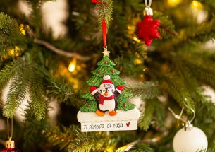 Una delle decorazioni più natalizie da appendere è il vitale e divertente pinguino con l’albero di Natale. Ogni oggetto potrà essere personalizzato, secondo i tuoi desideri, dalle nostre decoratrici. Si possono inserire i nomi dei membri della famiglia su ogni animaletto e scrivere un augurio, una data o una breve frase sul banner bianco. Tutte le scritte personalizzate sono fatte a mano, senza costi aggiuntivi. Ogni decorazione ti arriverà nella splendida Gift Box.