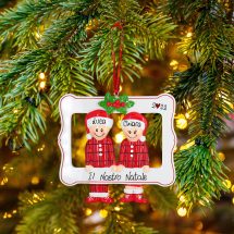 Mettetevi in posa che iniziamo a dipingere un bel quadro familiare da incorniciare! La decorazione da appendere all’albero è pronta per essere personalizzata inserendo i nomi sui cappellini dei 2 personaggi e scrivendo una breve frase, un augurio o una data sulla cornice bianca. Le nostre bravissime decoratrici scriveranno a mano ogni tuo desiderio, senza nessun costo aggiuntivo. Ogni decorazione sarà consegnata nella splendida Gift Box.