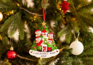 I due elementi più simbolici del Natale? I regali e gli abbracci, i primi sono una bella sorpresa mentre i secondi creano un’atmosfera d’amore e affetto. La decorazione da appendere all’albero è pronta per essere personalizzata inserendo i nomi sui cappellini dei 4 personaggi e scrivendo una frase, un augurio o una data sul banner bianco. Le nostre bravissime decoratrici provvederanno a scrivere a mano ogni tuo desiderio, senza nessun costo aggiuntivo. Ogni decorazione sarà consegnata nella splendida Gift Box.