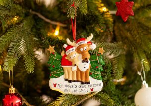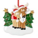 Due renne innamorate che festeggiano insieme il Natale. È questa la decorazione più simpatica e dolce da appendere sull’albero di Natale. Le nostre decoratrici potranno personalizzarla secondo le tue indicazioni. E’ possibile inserire i nomi degli innamorati sui cappelli e scrivere una frase, una data o un augurio sul banner bianco. Tutte le personalizzazioni sono fatte a mano, senza nessun costo aggiuntivo. Ogni prodotto acquistato sarà consegnato nella splendida Gift Box.