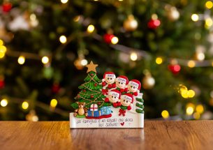 Una scalinata che arriva in salotto dove si può ammirare l’albero con luci e addobbi e controllare se sono arrivati i pacchi portati da Babbo Natale. La decorazione per la tavola di Natale è pronta per essere personalizzata inserendo i nomi sui cappellini dei 5 personaggi e scrivendo una breve frase, un augurio o una data sul banner bianco. Le nostre bravissime decoratrici scriveranno a mano ogni tuo desiderio, senza nessun costo aggiuntivo. Ogni decorazione sarà consegnata nella splendida Gift Box.