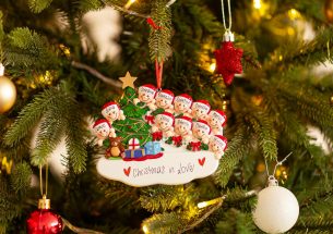 Una scalinata che arriva in salotto dove si può ammirare l’albero di Natale con luci e addobbi e controllare se sono arrivati i pacchi portati da Babbo Natale. La decorazione è pronta per essere personalizzata inserendo i nomi sui cappellini degli 11 personaggi e scrivendo una breve frase, un augurio o una data sul banner bianco. Le nostre bravissime decoratrici scriveranno a mano ogni tuo desiderio, senza nessun costo aggiuntivo. Ogni decorazione sarà consegnata nella splendida Gift Box.