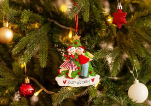 Lo scambio dei regali è uno dei momenti più belli del Natale. Doni unici, desideri che si avverano e attimi di felicità che rimangono impressi nella mente. La decorazione è pronta per essere personalizzata inserendo i nomi sui cappellini dei 2 personaggi e scrivendo una breve frase, un augurio o una data sul banner bianco. Le nostre bravissime decoratrici scriveranno a mano ogni tuo desiderio, senza nessun costo aggiuntivo. Ogni decorazione sarà consegnata nella splendida Gift Box.