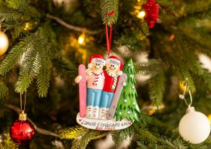 Sciare durante una bella vacanza in montagna è un momento rigenerante per tutta la famiglia. La decorazione da appendere all’albero è pronta per essere personalizzata inserendo i nomi sui cappellini dei 2 personaggi e scrivendo una breve frase, un augurio o una data sul banner bianco. Le nostre bravissime decoratrici scriveranno a mano ogni tuo desiderio, senza nessun costo aggiuntivo. Ogni decorazione sarà consegnata nella splendida Gift Box.