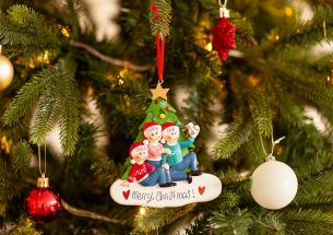 3,2,1 click! Il selfie di famiglia davanti all’albero di Natale non può mancare nell’album dei ricordi. La decorazione è pronta per essere personalizzata inserendo i nomi sui cappellini dei 3 personaggi e scrivendo una breve frase, un augurio o una data sul banner bianco. Le nostre bravissime decoratrici scriveranno a mano ogni tuo desiderio, senza nessun costo aggiuntivo. Ogni decorazione sarà consegnata nella splendida Gift Box.