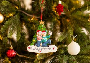 3,2,1 click! Il selfie di famiglia davanti all’albero di Natale non può mancare nell’album dei ricordi. La decorazione è pronta per essere personalizzata inserendo i nomi sui cappellini dei 2 personaggi e scrivendo una breve frase, un augurio o una data sul banner bianco. Le nostre bravissime decoratrici scriveranno a mano ogni tuo desiderio, senza nessun costo aggiuntivo. Ogni decorazione sarà consegnata nella splendida Gift Box.