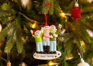 Un selfie per immortalare tutta la famiglia il giorno di Natale è un gesto da fare per avere un ricordo di momenti belli trascorsi insieme. La decorazione da appendere all’albero è pronta per essere personalizzata inserendo i nomi sui cappellini dei 3 personaggi e scrivendo una frase, un augurio o una data sul banner bianco. Le nostre bravissime decoratrici provvederanno a scrivere a mano ogni tuo desiderio, senza nessun costo aggiuntivo. Ogni decorazione sarà consegnata nella splendida Gift Box.