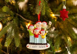 Un selfie per immortalare tutta la famiglia il giorno di Natale è un gesto da fare per avere un ricordo di momenti belli trascorsi insieme. La decorazione da appendere all’albero è pronta per essere personalizzata inserendo i nomi sui cappellini dei 5 personaggi e scrivendo una frase, un augurio o una data sul banner bianco. Le nostre bravissime decoratrici provvederanno a scrivere a mano ogni tuo desiderio, senza nessun costo aggiuntivo. Ogni decorazione sarà consegnata nella splendida Gift Box.