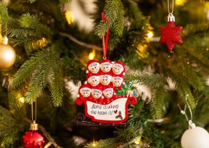 Un giro nella slitta carica di regali è quello che ci vuole per portare allegria durante le vacanze di Natale. La decorazione da appendere all’albero è pronta per essere personalizzata inserendo i nomi sui cappellini dei 9 personaggi e scrivendo una frase, un augurio o una data sul banner bianco. Le nostre bravissime decoratrici provvederanno a scrivere a mano ogni tuo desiderio, senza nessun costo aggiuntivo. Ogni decorazione sarà consegnata nella splendida Gift Box.