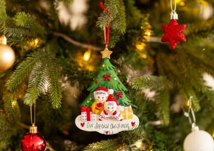 Tanti regali sotto l’albero di Natale da scartare tutti insieme, condividendo l’allegria e la magia del momento. La decorazione da appendere all’albero è pronta per essere personalizzata inserendo i nomi sui cappellini dei 2 personaggi e scrivendo una frase, un augurio o una data sul banner bianco. Le nostre bravissime decoratrici provvederanno a scrivere a mano ogni tuo desiderio, senza nessun costo aggiuntivo. Ogni decorazione sarà consegnata nella splendida Gift Box.