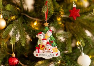 Tanti regali sotto l’albero di Natale da scartare tutti insieme, condividendo l’allegria e la magia del momento. La decorazione da appendere all’albero è pronta per essere personalizzata inserendo i nomi sui cappellini dei 4 personaggi e scrivendo una frase, un augurio o una data sul banner bianco. Le nostre bravissime decoratrici provvederanno a scrivere a mano ogni tuo desiderio, senza nessun costo aggiuntivo. Ogni decorazione sarà consegnata nella splendida Gift Box.