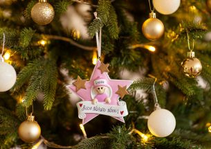 Una stella con una piccola bimba è pronta a brillare. Le nostre bravissime decoratrici seguiranno le tue indicazioni per personalizzare la decorazione. È possibile inserire un nome sul cappellino e scrivere una frase, una dedica, una data o un augurio sul banner sotto alla bimba. Tutte le personalizzazioni sono fatte a mano, senza nessun costo aggiuntivo. Ogni decorazione acquistata sarà consegnata nella Gift Box natalizia.