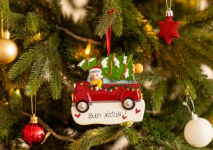 Dopo aver scelto l’albero perfetto per la nostra casa, lo carichiamo in macchina e via si parte per tornare ad addobbarlo! La decorazione è pronta per essere personalizzata inserendo il nome sul cappellino del personaggio e scrivendo una breve frase, un augurio o una data sul banner bianco. Le nostre bravissime decoratrici scriveranno a mano ogni tuo desiderio, senza nessun costo aggiuntivo. Ogni decorazione sarà consegnata nella splendida Gift Box.
