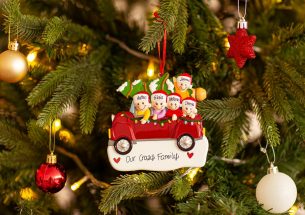Dopo aver scelto l’albero perfetto per la nostra casa, lo carichiamo in macchina e via si parte per tornare ad addobbarlo! La decorazione è pronta per essere personalizzata inserendo i nomi sui cappellini dei 5 personaggi e scrivendo una breve frase, un augurio o una data sul banner bianco. Le nostre bravissime decoratrici scriveranno a mano ogni tuo desiderio, senza nessun costo aggiuntivo. Ogni decorazione sarà consegnata nella splendida Gift Box.