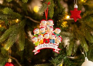 A Natale poter stare tutti insieme per condividere un momento, un ricordo o un’opinione è un piacere al quale non si può rinunciare. La decorazione da appendere all’albero è pronta per essere personalizzata inserendo i nomi sui cappellini degli 11 personaggi e scrivendo una frase, un augurio o una data sul banner bianco. Le nostre bravissime decoratrici provvederanno a scrivere a mano ogni tuo desiderio, senza nessun costo aggiuntivo. Ogni decorazione sarà consegnata nella splendida Gift Box.