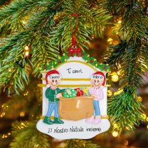 Il sogno di tutti: un sacco pieno di regali da scambiarsi per Natale. Doni unici, desideri che si avverano e attimi di felicità che rimangono impressi nella mente. La decorazione è pronta per essere personalizzata inserendo i nomi sui cappellini dei 2 personaggi e scrivendo una breve frase, un augurio o una data sul banner bianco. Le nostre bravissime decoratrici scriveranno a mano ogni tuo desiderio, senza nessun costo aggiuntivo. Ogni decorazione sarà consegnata nella splendida Gift Box.